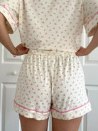 Experience ultimate comfort with the Cherry On Top Pajama Shorts. These extremely soft shorts feature a charming cherry print that adds a playful touch to your sleepwear. Perfect for lounging or bedtime, their cozy fabric keeps you comfortable all night while the cute design brightens your mood. Treat yourself to a fun and relaxing wardrobe essential you'll love to wear every day.