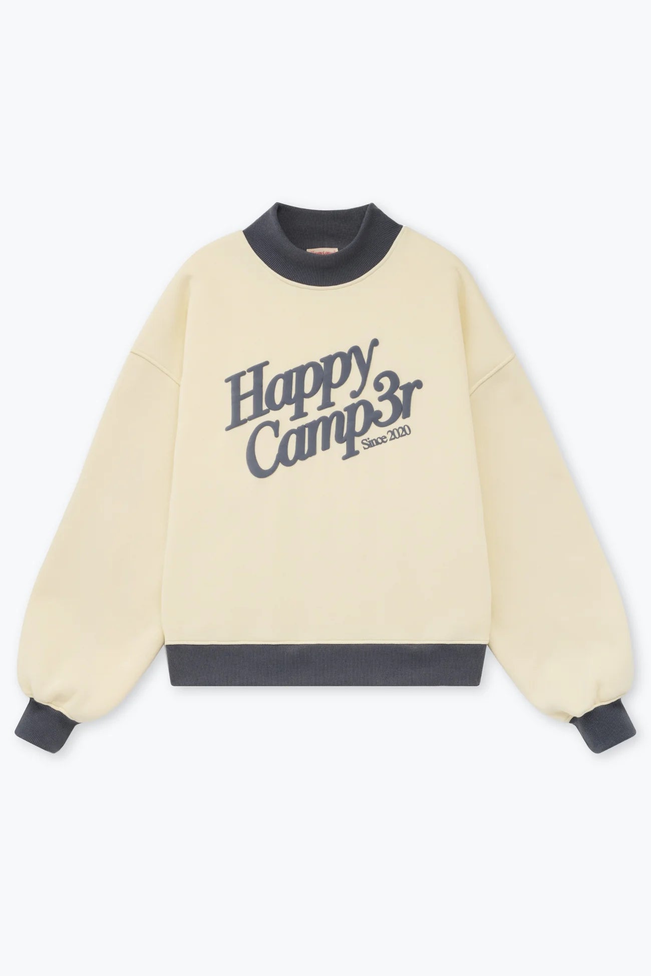 Puff Series Mockneck by Happy Camp3r in the color Cream! Plush and soft with the logo on front.  Back is blank.  Unisex sizing.