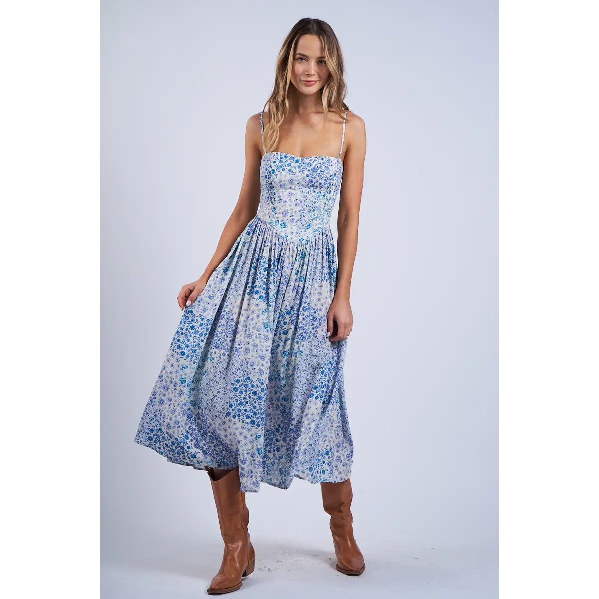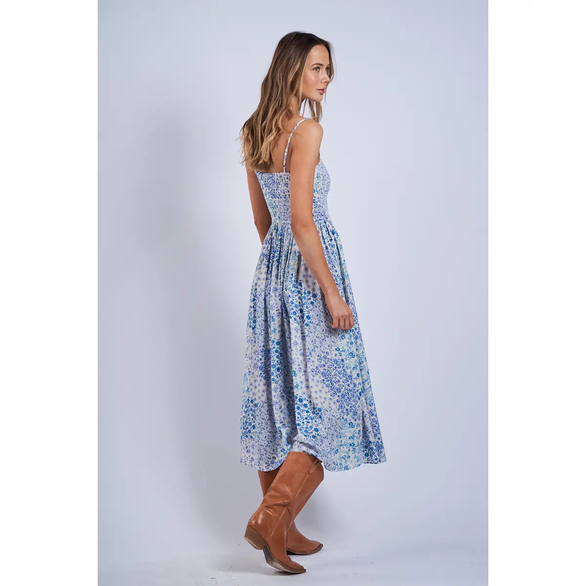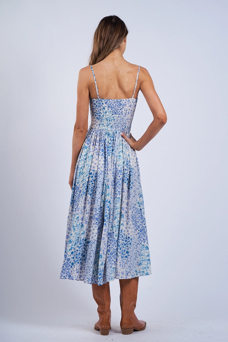 Blue Floral Patch Midi Dress