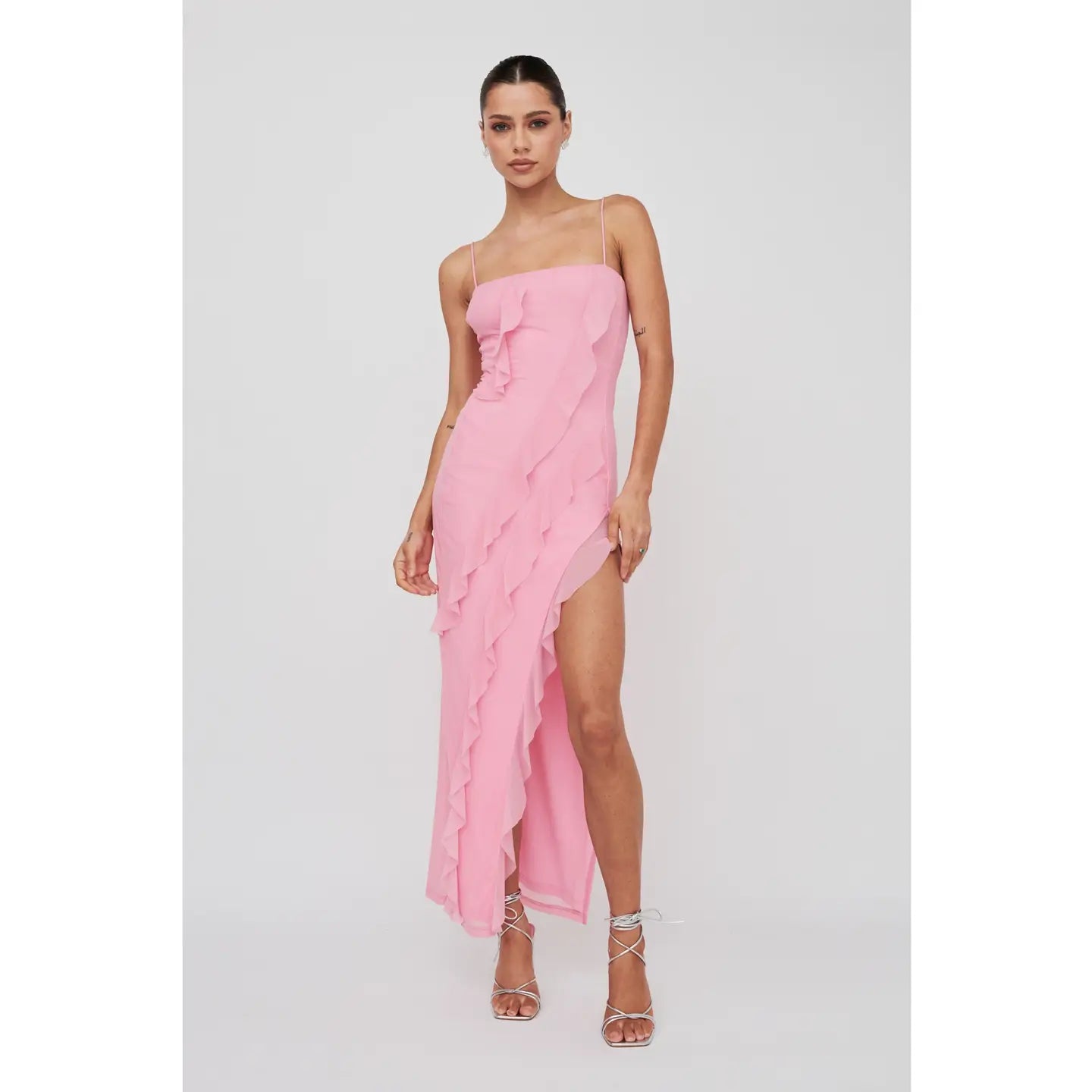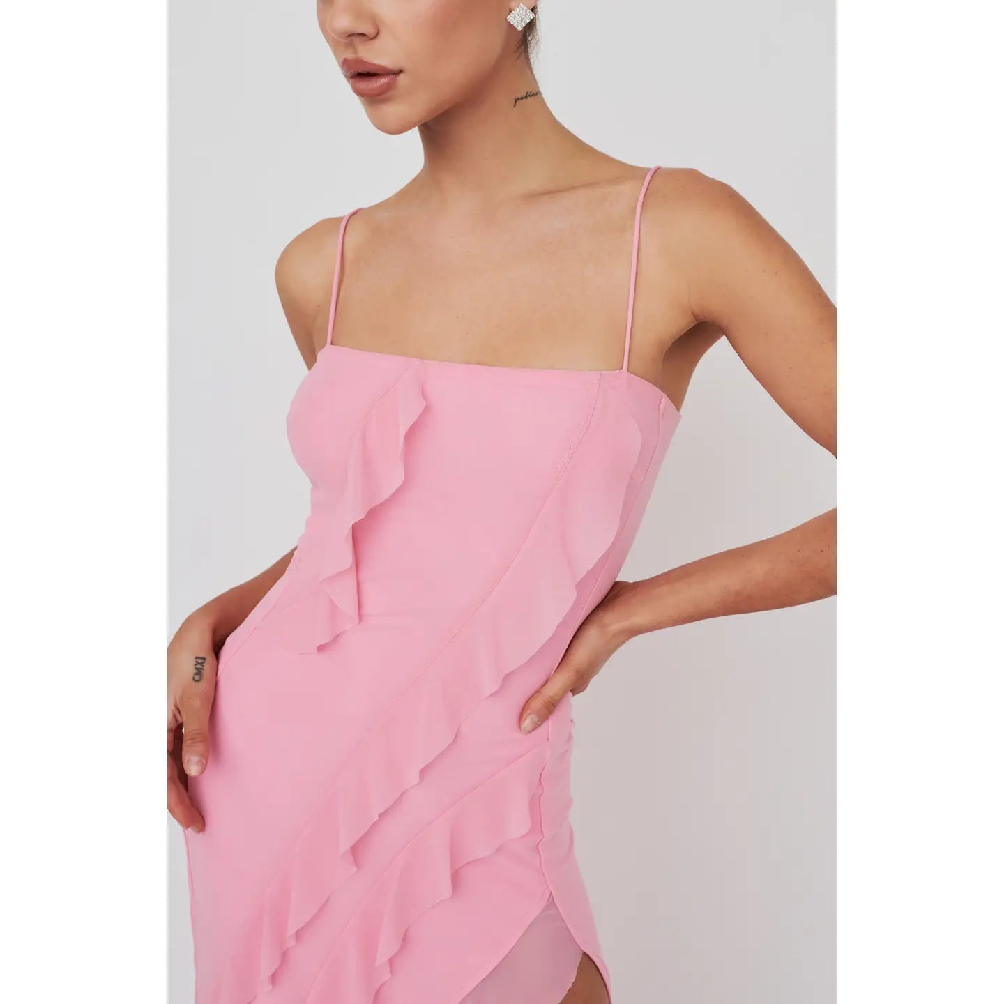 Bodycon Mesh Frill Maxi Dress