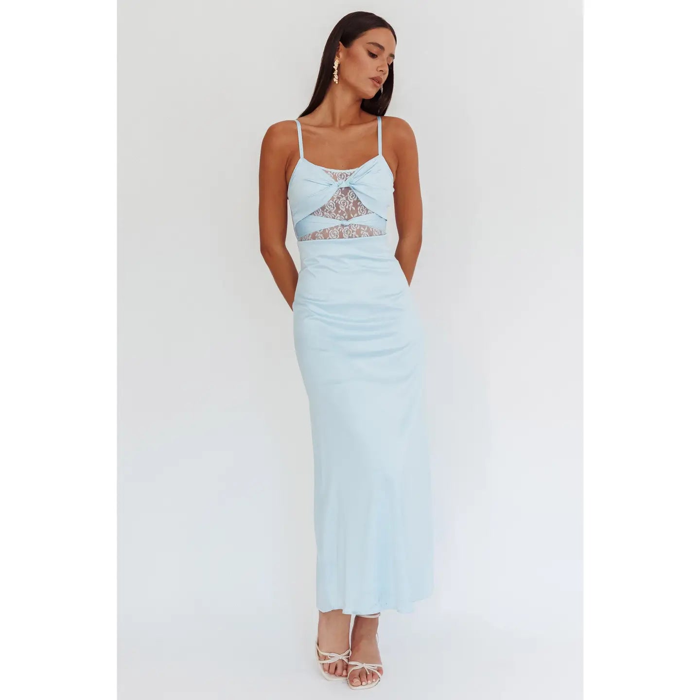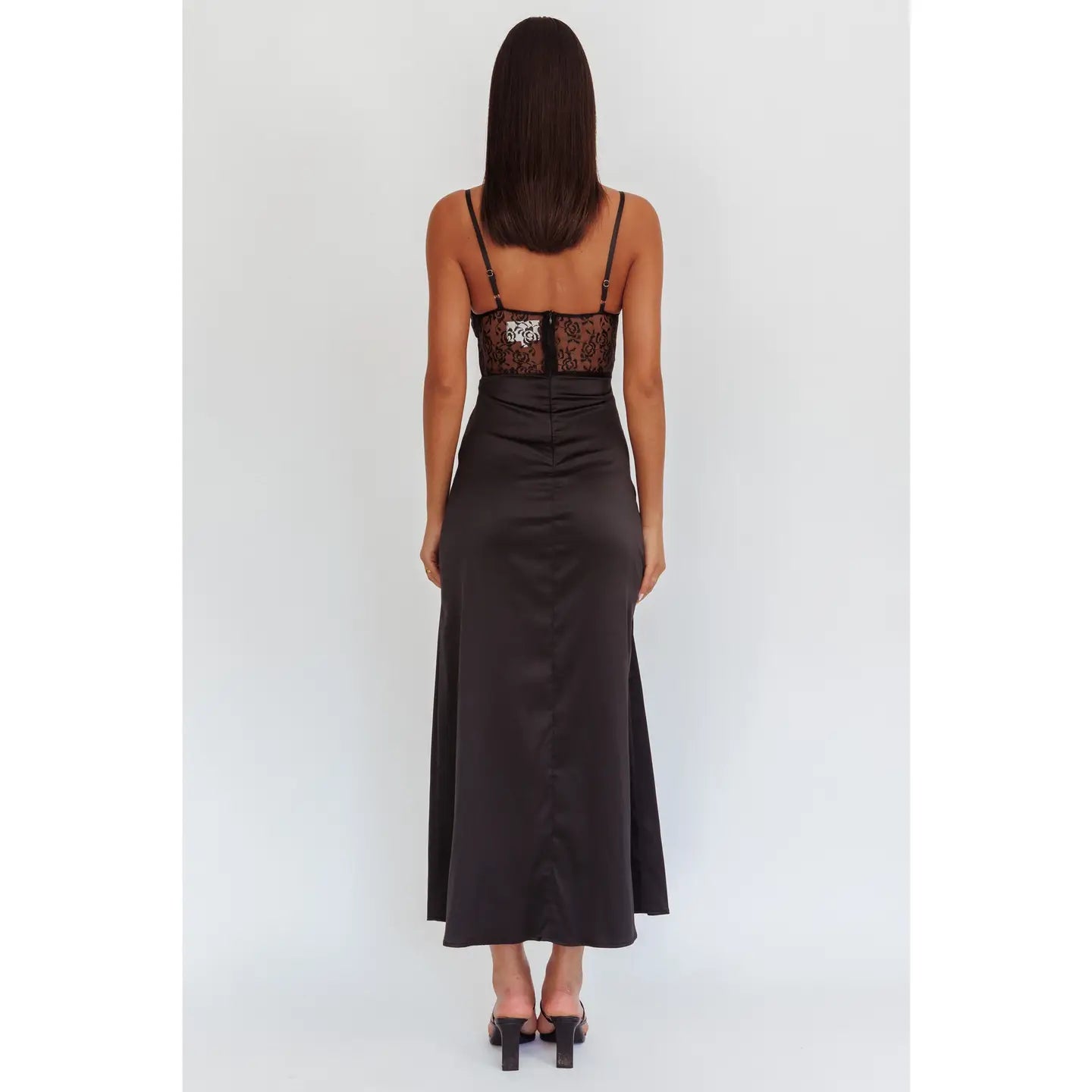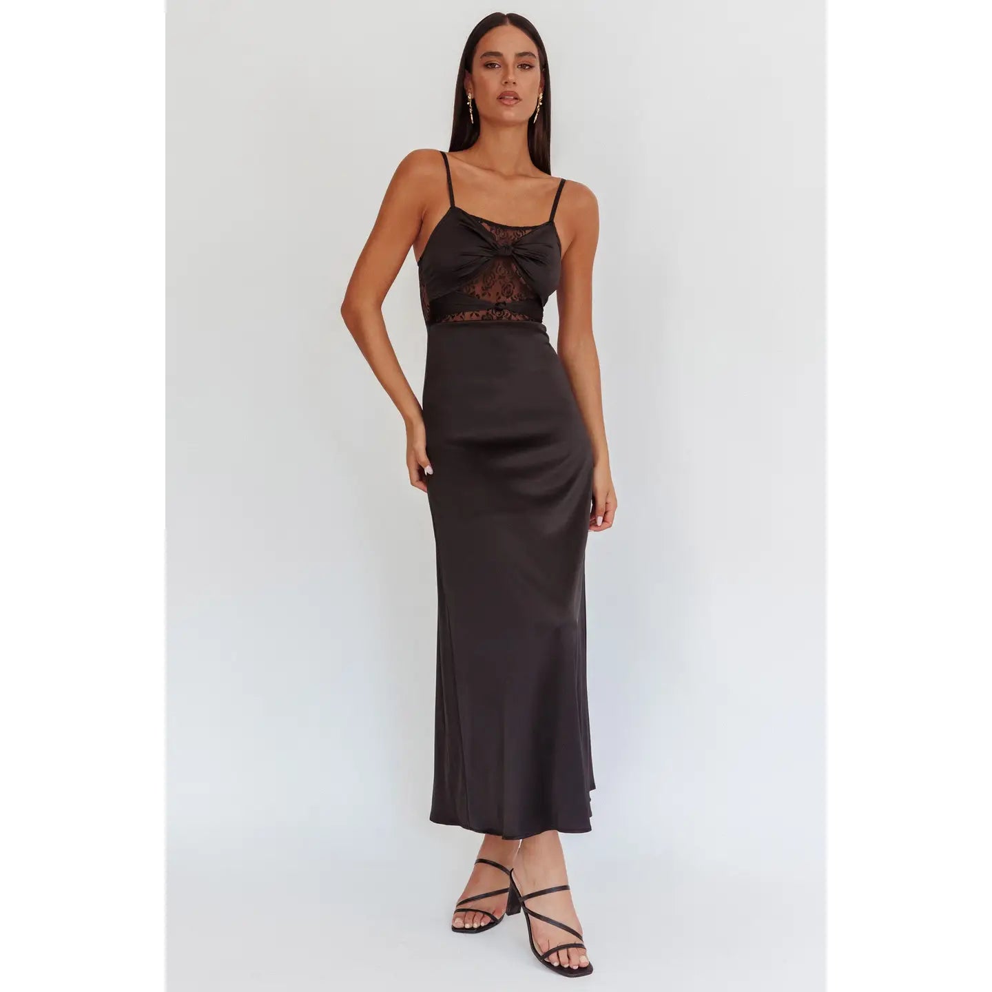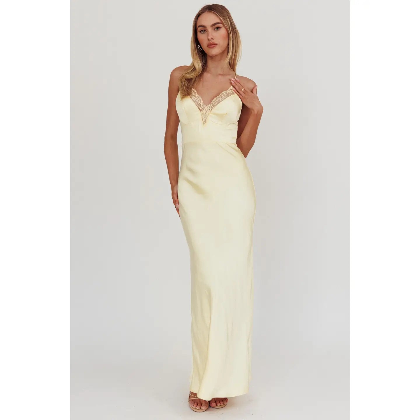 Lace Satin Trim Maxi Dress