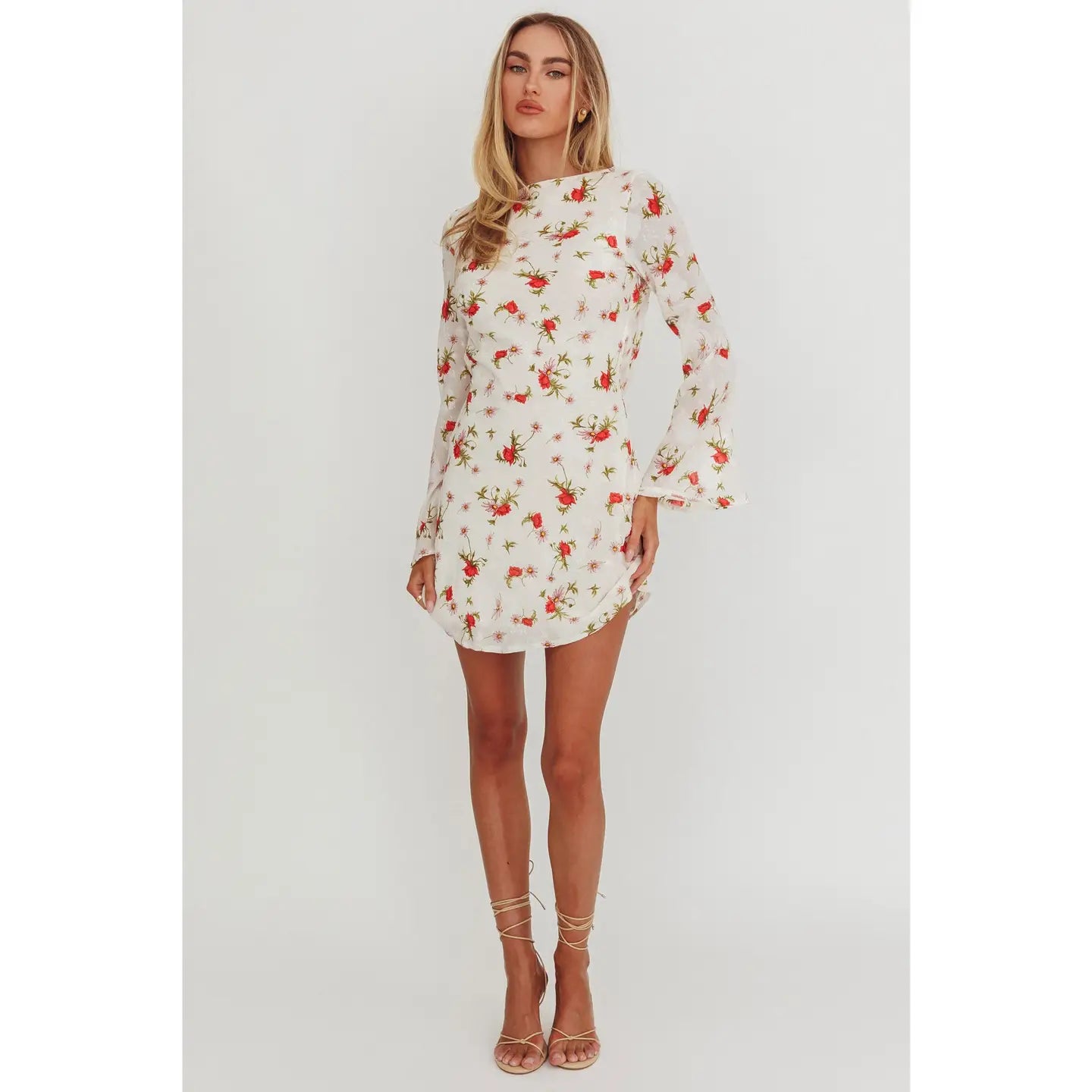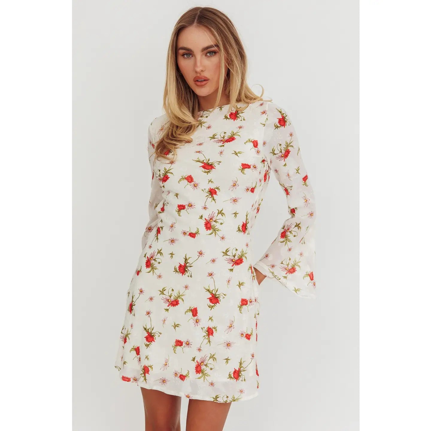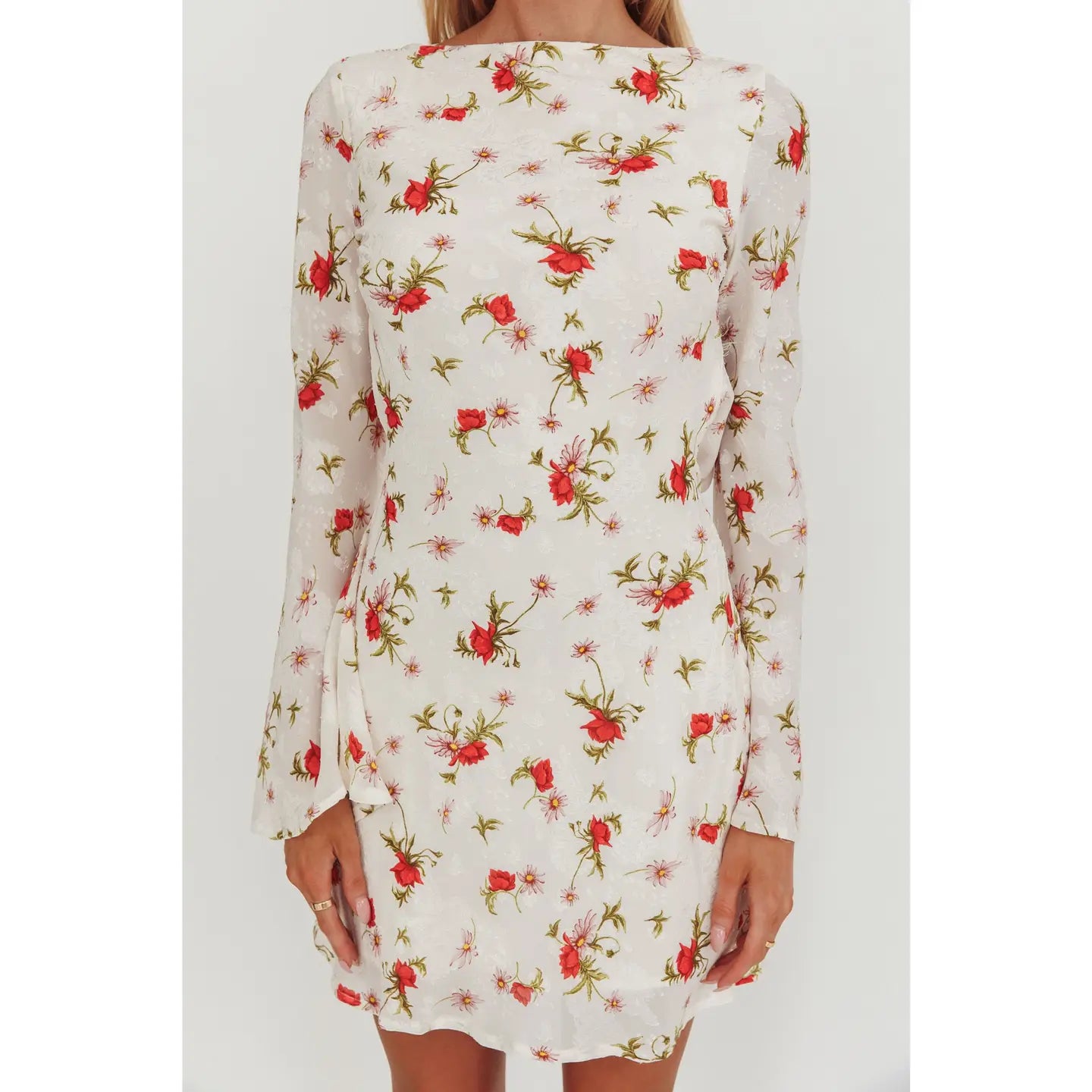 Red Floral Long Sleeve Mini Dress