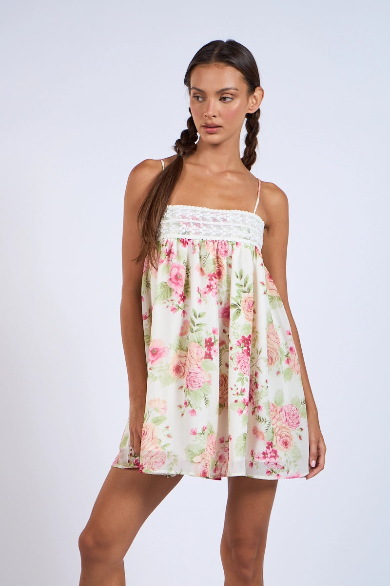 Floral Ribbon Mini Dress